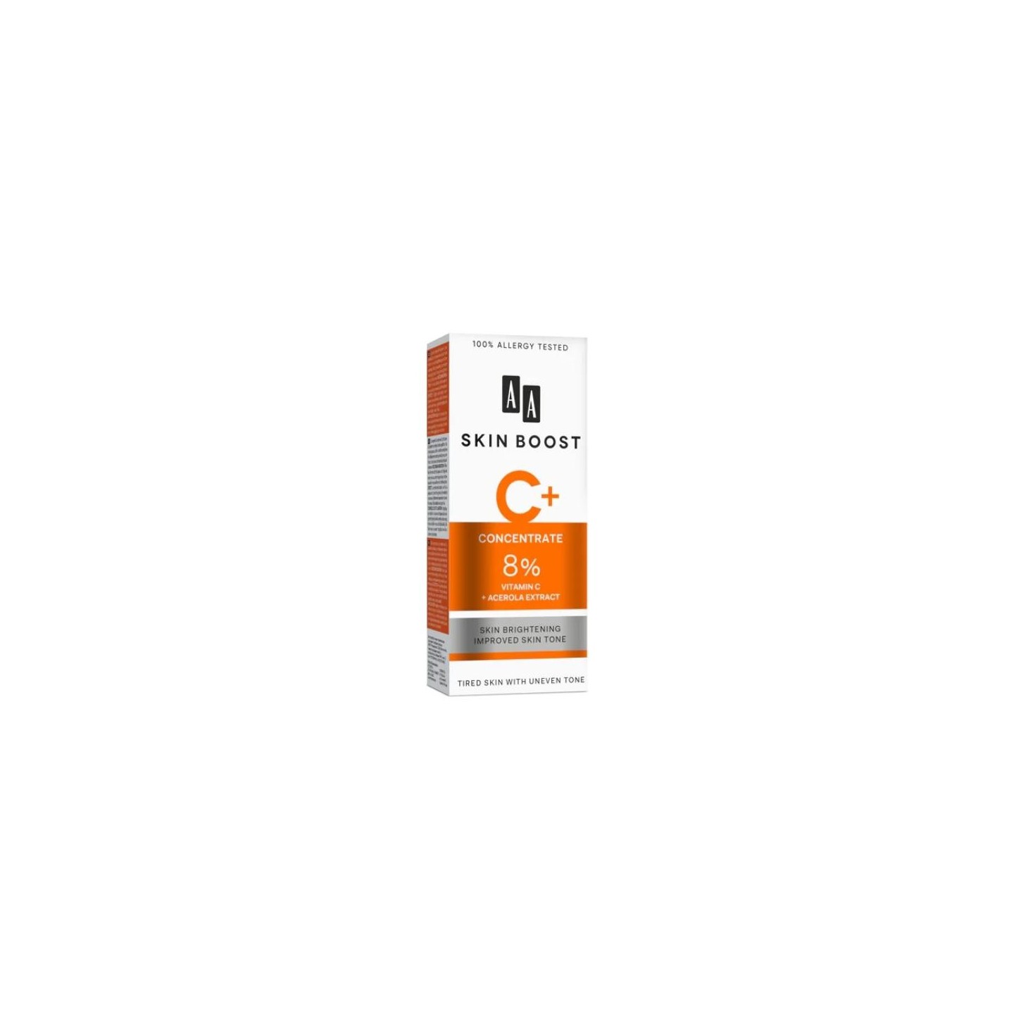 Нанесіть невелику кількість продукту кінчиками пальців на обличчя, шию та декольте. Використовуйте окремо або в поєднанні з освітлюючим денним кремом для обличчя серії AA Skin Boost.