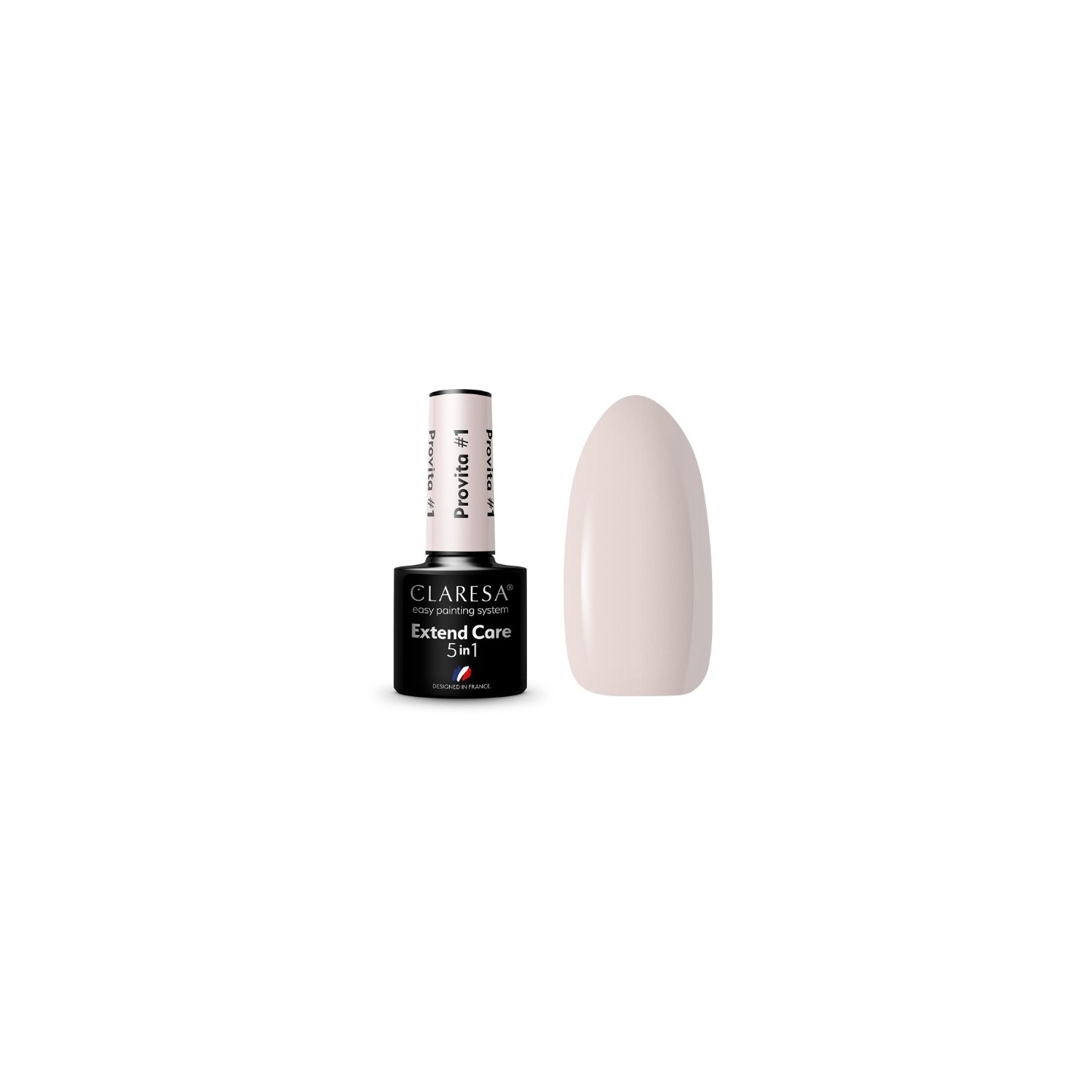Extend Care 5in1 Provita — універсальна гібридна база середньої товщини, яка служить як основою для успішної укладки, так і зміцнює природну нігтьову пластину. Формула продукту містить комплекс InoRet+ на основі інозиту, ретинолу, біотину, екстракту насіння кінського каштана та олії насіння троянди. Ця поживна суміш регенерує ніготь, зміцнює його структуру, зменшує ламкість і стимулює ріст. База доступна в декількох кольорах, що дозволяє використовувати її самостійно, створюючи витончений природний вигляд.