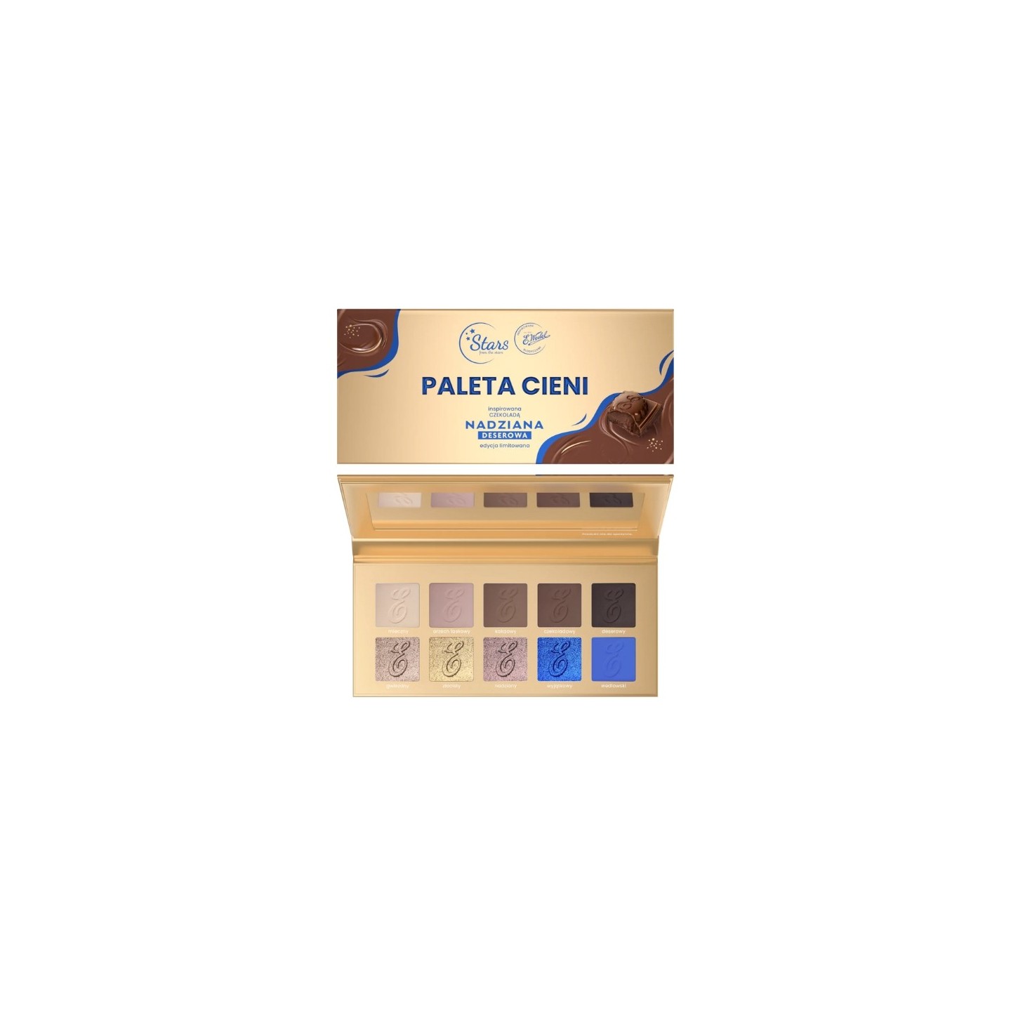Палетка тіней для повік — це унікальний продукт, який виводить макіяж на вищий рівень чуттєвих вражень. Натхненна дивовижними кольорами упаковки шоколаду FILLED DESSERT, ця палітра з десяти тіней для повік не тільки радує своїми універсальними кольорами, ale й зачаровує ароматом шоколаду Wedel.
