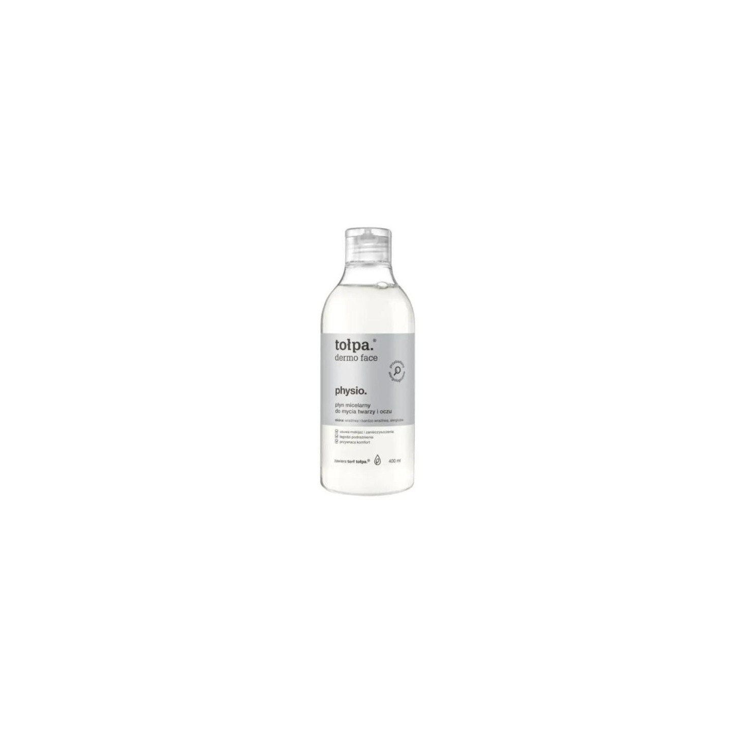 Tołpa Dermo Face Physio. Міцелярний флюїд для вмивання обличчя та очей видаляє макіяж і забруднення. Він делікатний і має фізіологічний pH, тому його також можна використовувати для зняття макіяжу з очей. Він заспокоює Залишає відчуття комфорту. Призначений для використання без використання води.