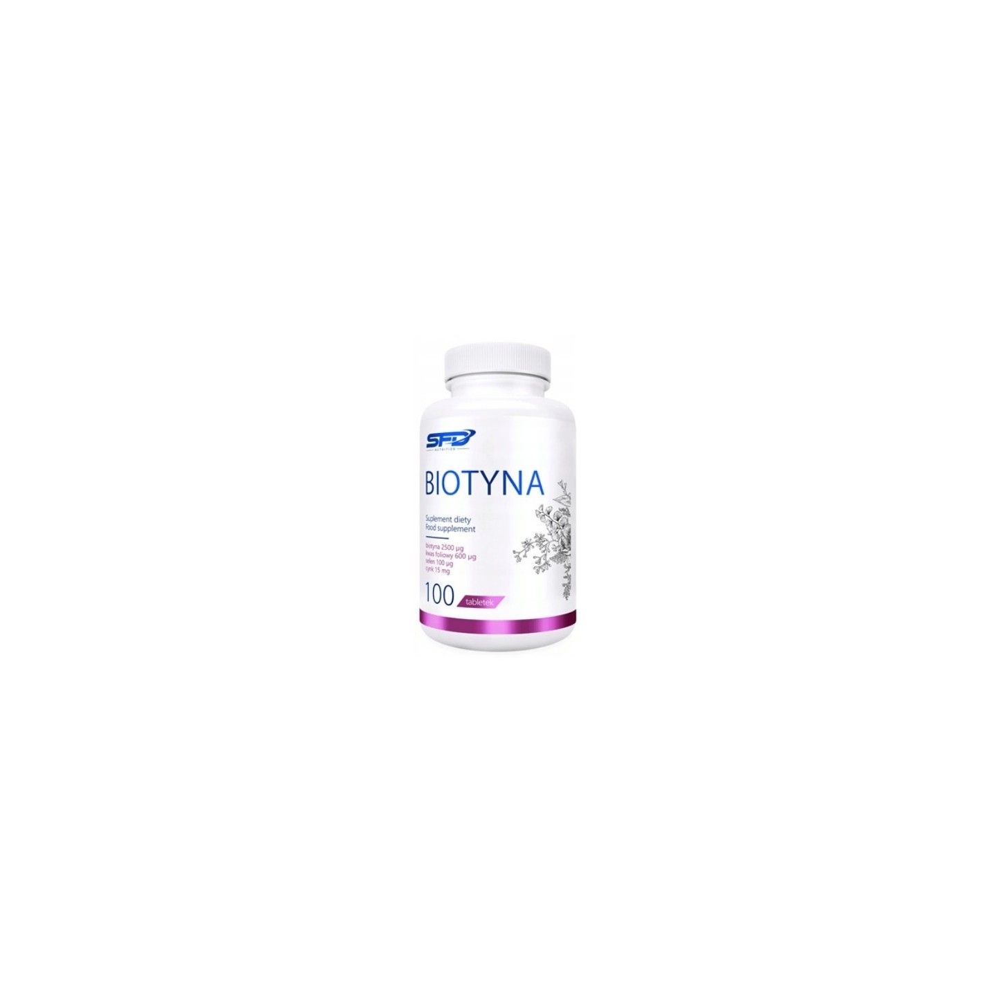SFD Biotin - це високоякісна дієтична добавка, що містить до 5 мг біотину в кожній порції, що підтримує здоров'я волосся, шкіри та правильну роботу нервової системи. Упаковка містить аж 400 таблеток, що si більше року прийому добавок - економічно та ефективно! Біотин, також званий вітаміном B7 або H, бере участь у виробництві жирних кислот і синтезі кератину – основного структурного білка волосся і нігтів. Він також допомагає підтримувати нормальні психологічні функції та підтримує метаболізм макроелементів, що робить його важливим компонентом вашого щоденного раціону – не лише для вашої краси, ale й для вашого здоров’я.