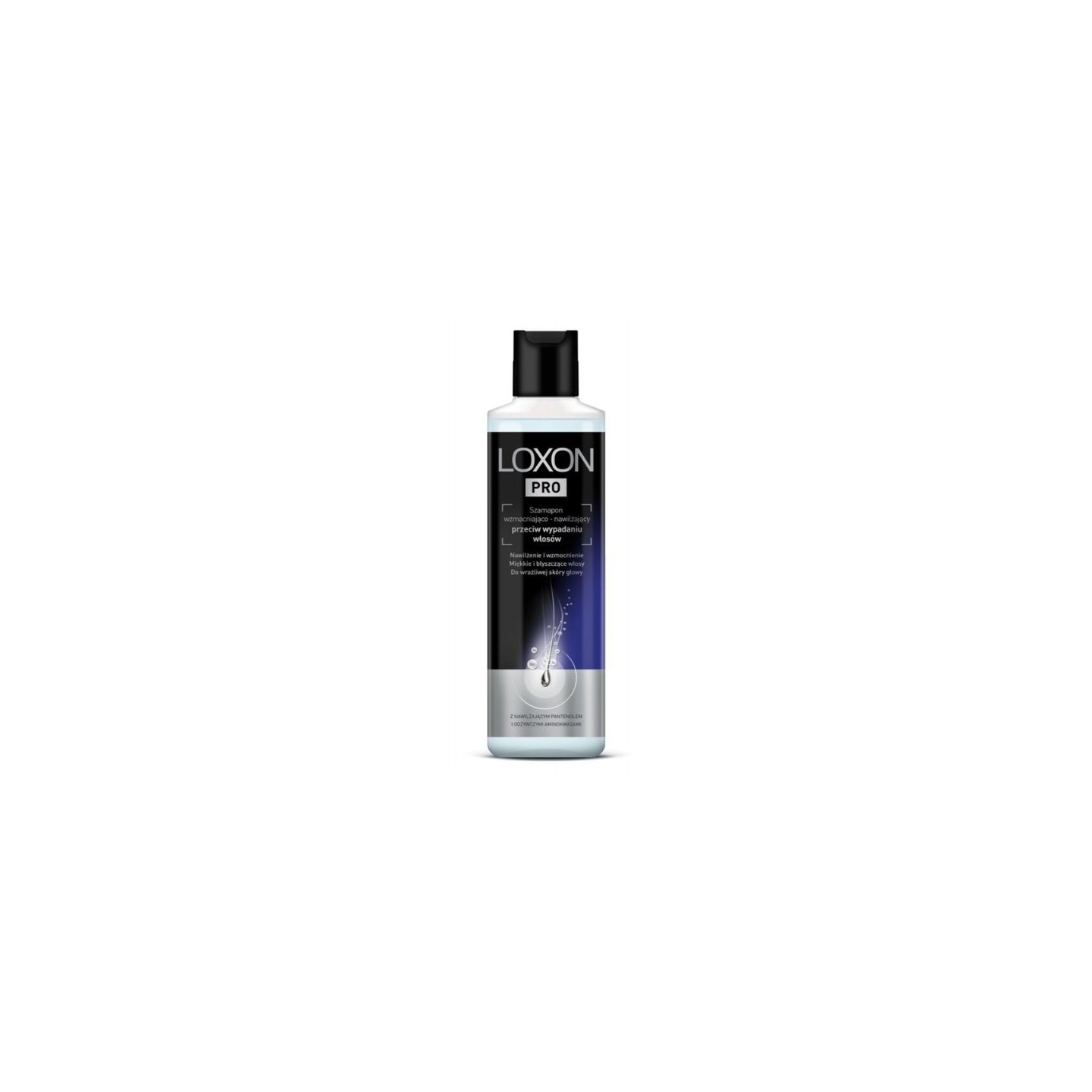 Шампунь LOXON PRO - це зміцнюючий і зволожуючий продукт, розроблений спеціально проти випадіння волосся. Його формула містить pantenol , який чудово зволожує шкіру голови, і живильні амінокислоти. Шампунь підходить навіть для чутливої шкіри голови, не містить барвників і має ніжний аромат. Дерматологічно перевірено та підходить для веганів.