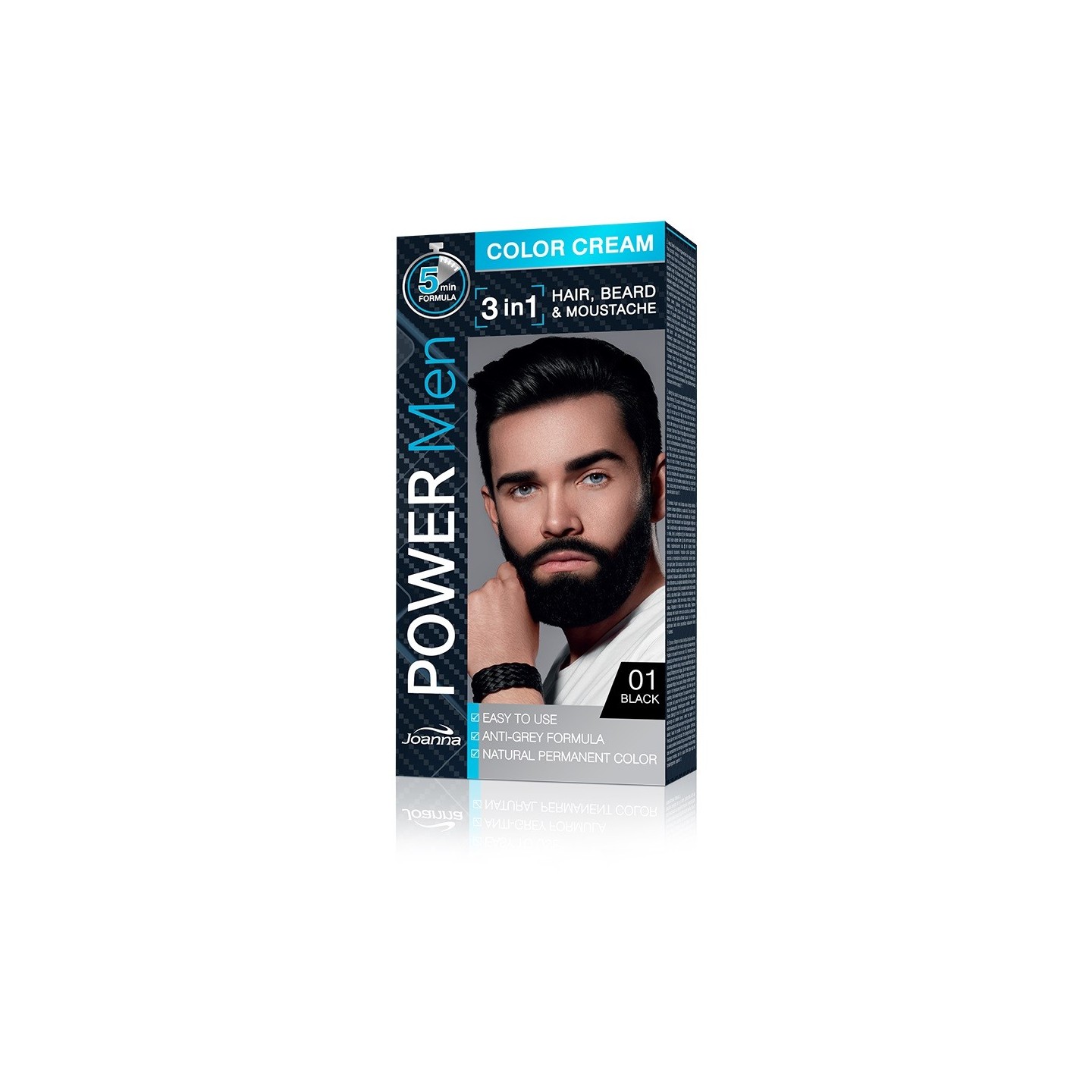 Joanna Power Men Cream Color 3in1 - чоловіча фарба для волосся, бороди та вусів - /01/ Black