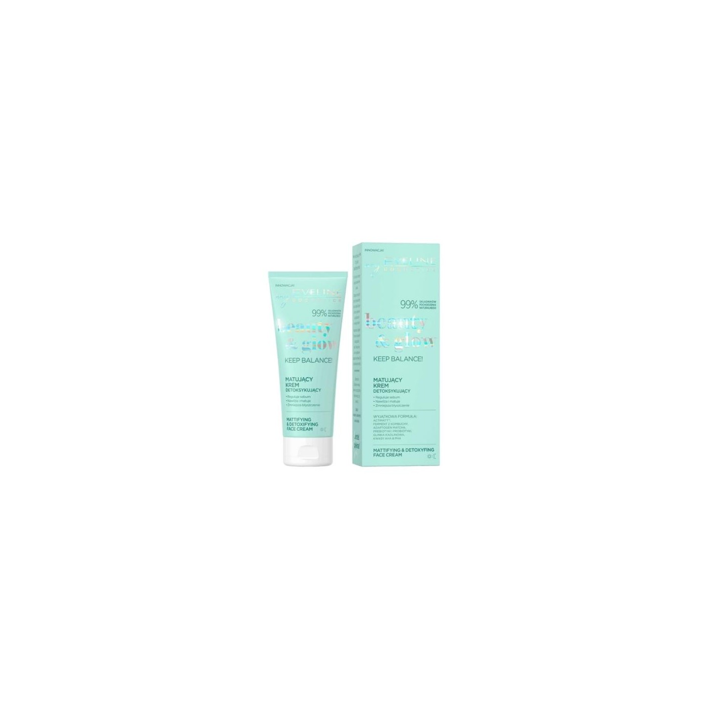 Eveline Beauty & Glow Keep Balance — це крем для обличчя, розроблений спеціально для щоденного догляду за жирною та комбінованою шкірою