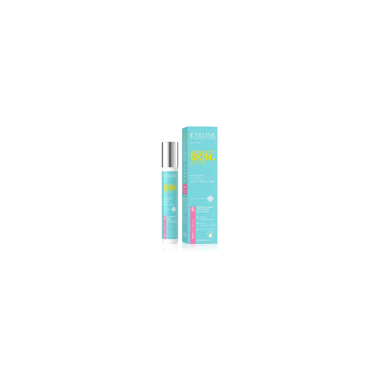 Spot roll-on - це концентрований засіб для лікування недоліків шкіри. Багатий активними інгредієнтами, він містить 5 % комплексу шикімової та мигдальної кислот, екстракт чайного дерева та лопуха, а також цінні добавки, такі як цинк, мідь та сірка. Ці компоненти забезпечують комплексний захист від запалень шкіри. Завдяки точній дії засіб усуває недоліки, живить шкіру та помітно розгладжує її. Косметика є п'ятим і останнім кроком у боротьбі за красиву шкіру в рамках серії PERFECT SKIN ACNE.