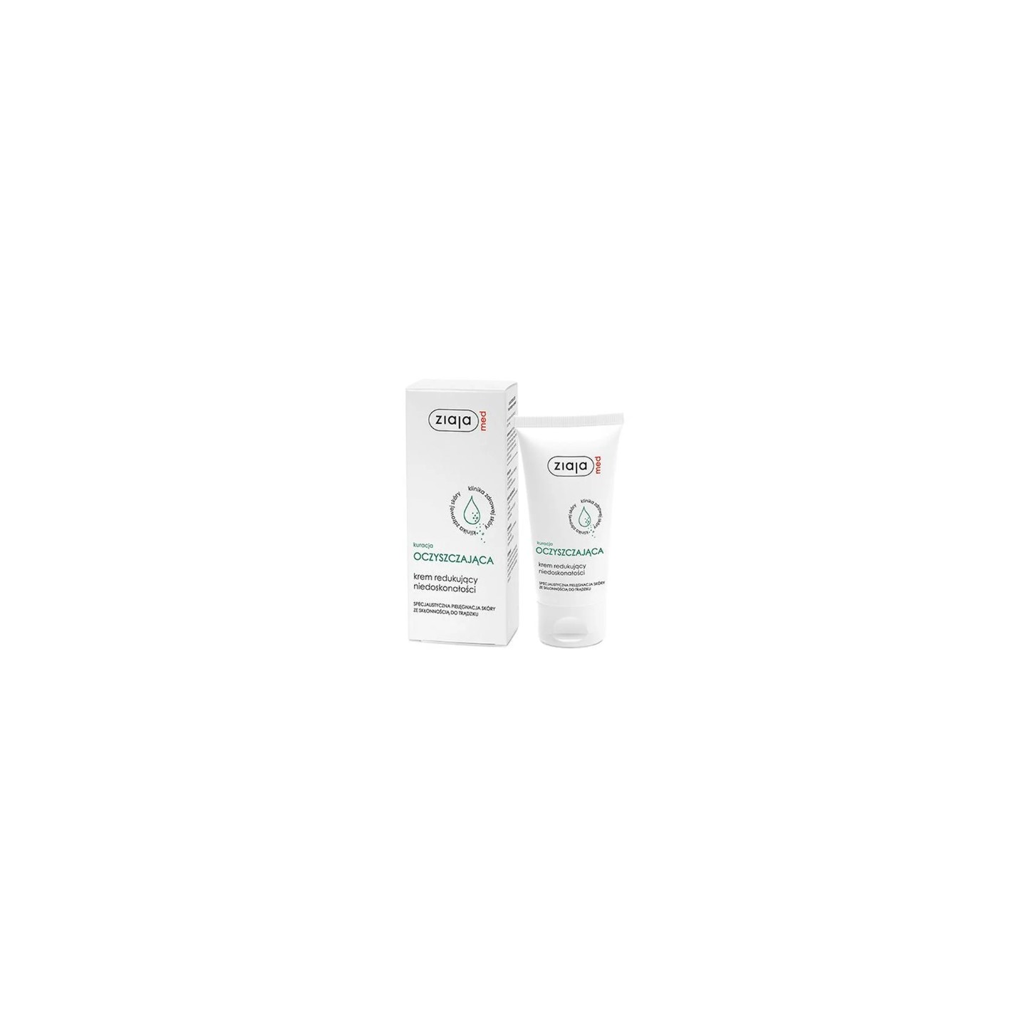 Крем для зменшення недосконалостей шкіри Ziaja Med регулює виділення шкірного сала, сприяє відлущуванню, має антибактеріальні властивості та заспокоює чутливу шкіру обличчя та тіла.