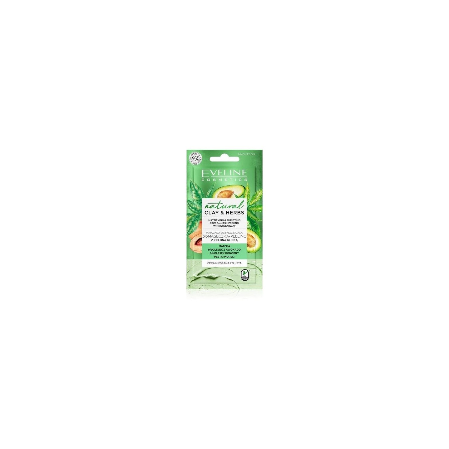 • Eveline Natural Clay & Herbs матуюча та очищаюча біомаска із зеленою глиною 8 мл
