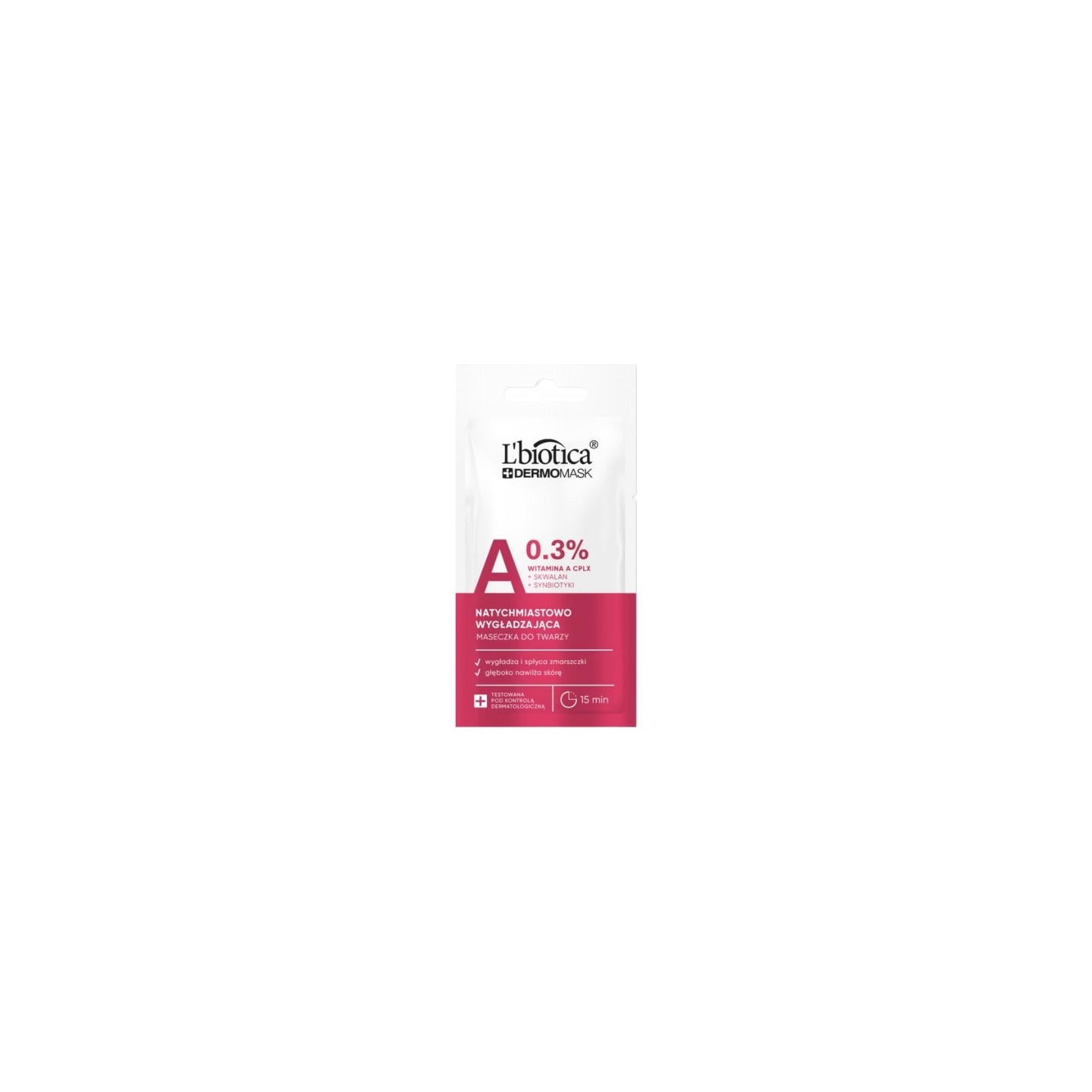 Миттєво розгладжуюча маска - це концентрована вітамінна ампула для шкіри з помітними зморшками та нерівною структурою. dermo -формула, багата активними інгредієнтами, швидко та ефективно покращує зовнішній вигляд і стан шкіри, глибоко зволожує та зменшує видимість зморшок. Дія діючих речовин: