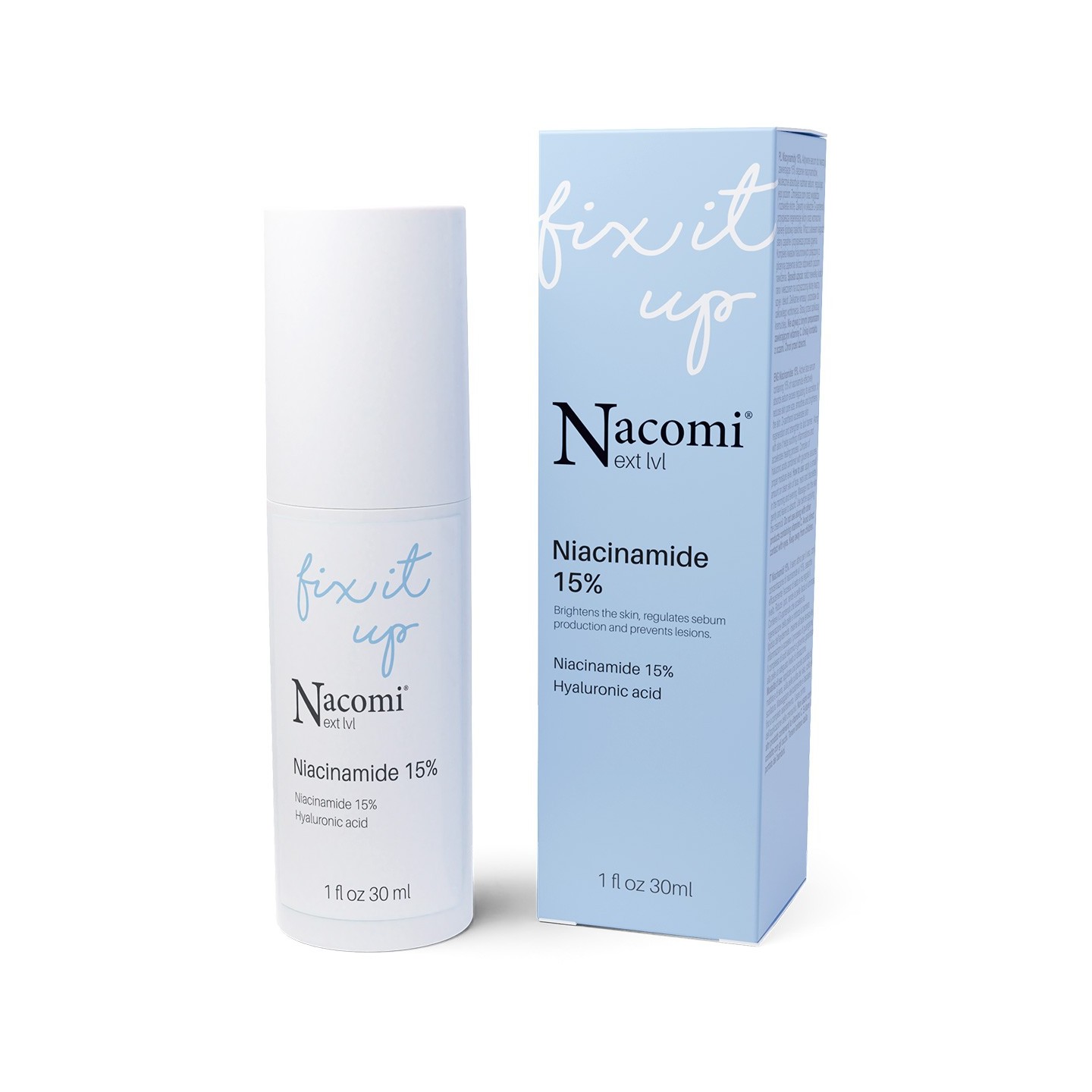 зволожений. Ніацинамід, що міститься в сироватці, проникає в шкіру, регулюючи її