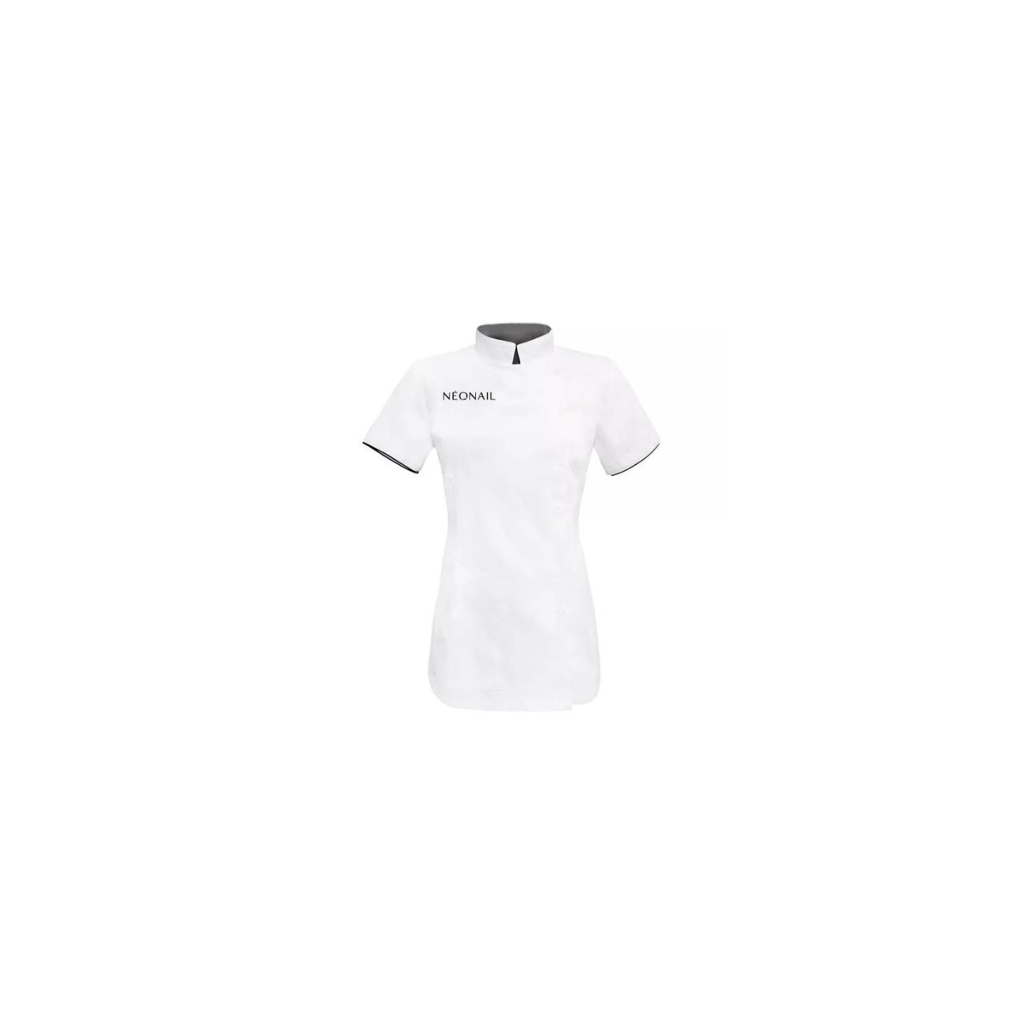 Фартух косметичний, асиметричний, застібається на кнопки, оброблений коміром-стійкою. Короткий рукав. Одна кишеня. Застібається на кнопки. З логотипом NEONAIL