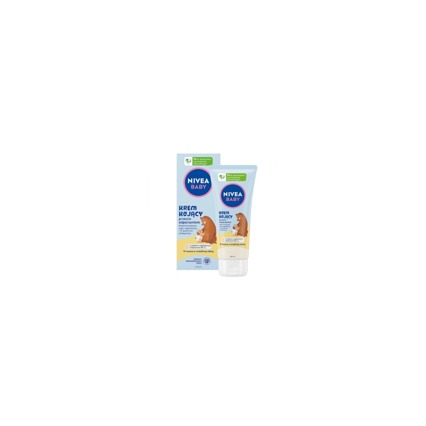 Заспокійливий крем від попрілостей - це продукт, створений для ніжної та чутливої шкіри малюків, починаючи з перших днів життя. Його формула на основі натуральних інгредієнтів, таких як 100% натуральна мигдальна олія та вітаміни B5 і E, забезпечує негайне полегшення та регенерацію шкіри, діючи до 12 годин. Крем рекомендований Інститутом польського Centrum здоров'я матері, що підтверджує його безпеку та ефективність.