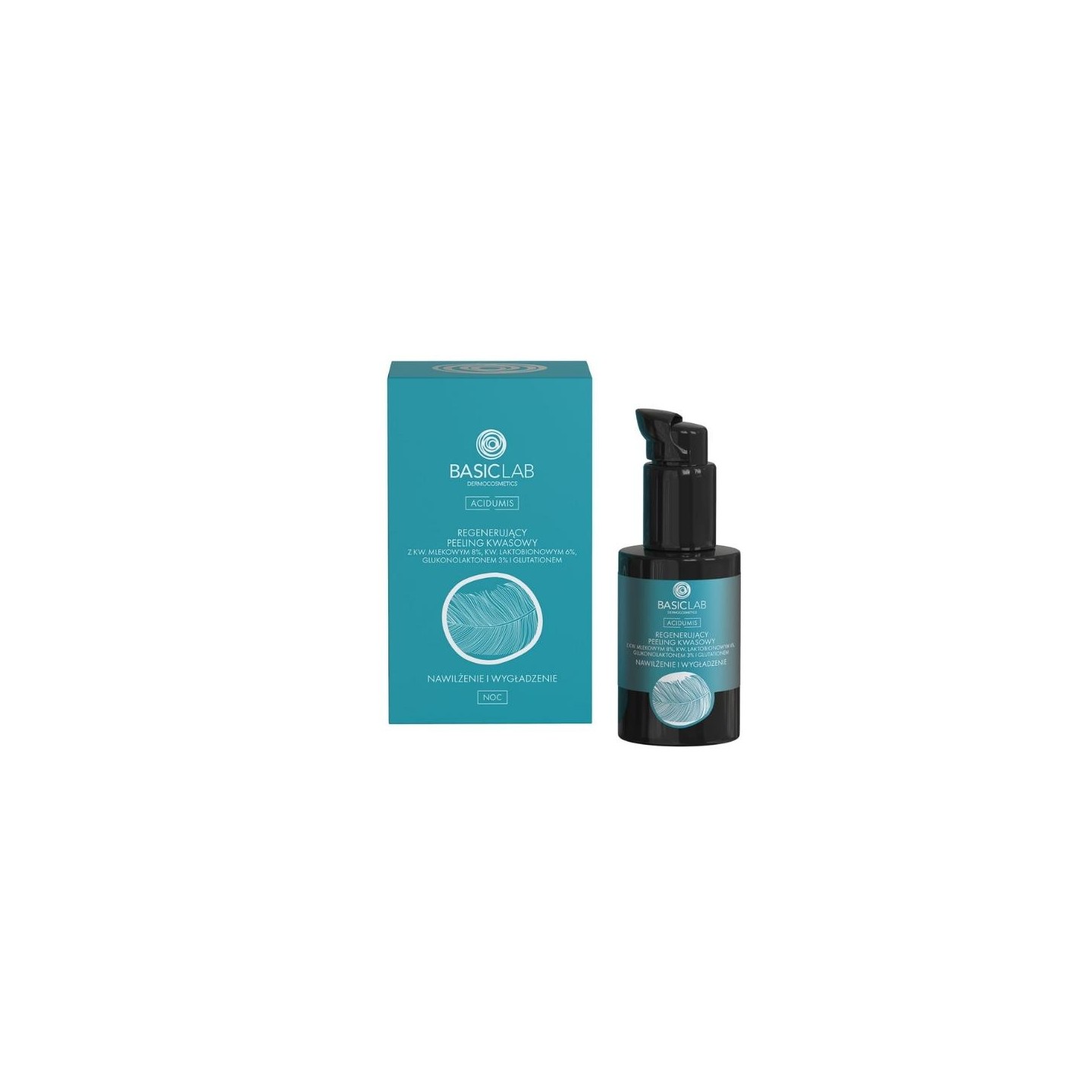 Кислотний peeling BasicLab Acidumis, що зменшує недоліки, — це нічна косметика, створена з урахуванням потреб шкіри: