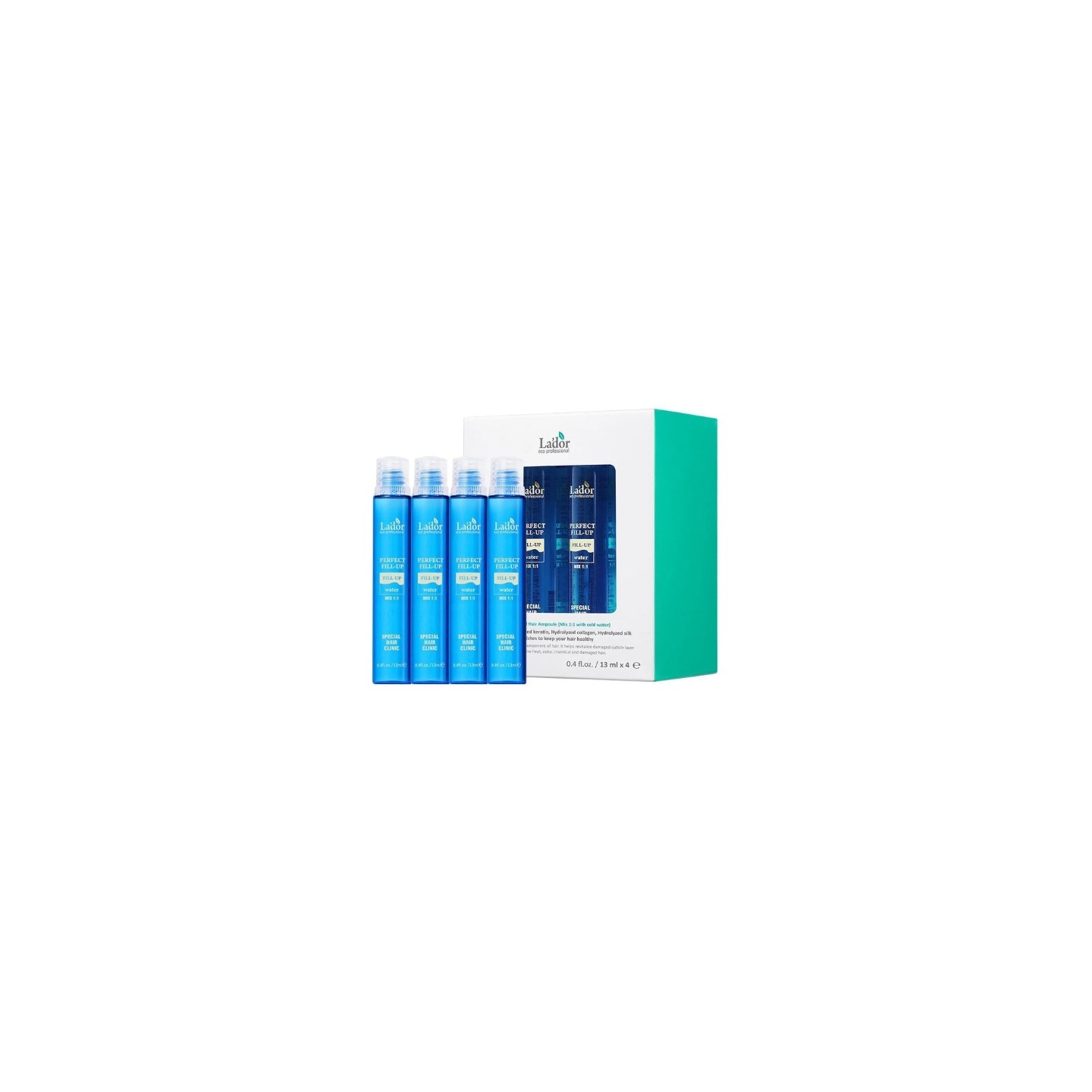 La'dor Perfect Hair Fill-Up – це інтенсивна відновлювальна ампула, яка відновлює структуру волосся зсередини, заповнюючи прогалини, закриваючи кутикули та відновлюючи м’якість, еластичність та здоровий блиск волосся. Завдяки вмісту кератину LPP, колагену PPT, керамідів, протеїнів та амінокислот шовку, формула діє як миттєво, так і довгостроково – захищаючи волосся від пошкоджень та запобігаючи його ламкості. Кремоподібна консистенція створюється після змішування вмісту ампули з водою. Регулярне використання зміцнює пасма, полегшує розчісування, а волосся si гладким, блискучим і більш схильним до укладання.
