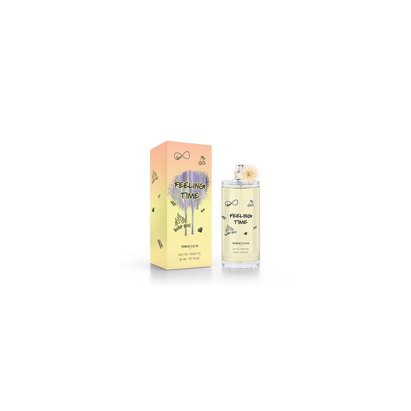 Туалетна вода Feeling Time — нова лінія ароматів, присвячена підліткам. Він натхненний світом розквіту, юнацького кохання та оптимістичного бачення невинної закоханості. Аромати складаються з поєднання солодких квітів і освіжаючих фруктів, створюючи гармонійну композицію.