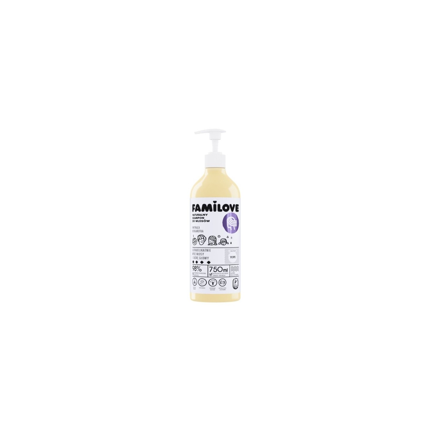 Шампунь FAMILOVE — це найбільш зручний для всієї сім’ї шампунь, надзвичайно ніжний і безпечний для шкіри голови. Підходить для всіх типів волосся, надзвичайно ефективний і ідеальний для щоденного використання, створений для догляду за всіма типами волосся, навіть чутливими. Його збалансована формула зволожує та живить волосся, а натуральні інгредієнти ніжно очищають шкіру голови та полегшують розчісування, залишаючи відчуття свіжості. Що важливо, він підходить для всієї родини, як для дорослих, так і для дітей старше 3 років. Такі унікальні інгредієнти, як сік алое та олія солодкого мигдалю, живлять і зволожують волосся, заспокоюють подразнення шкіри голови та зміцнюють її природний захисний бар’єр. Крім того, комплекс полісахаридів із насіння Чіа та льону розгладжує волосся, полегшуючи його розчісування. Відкрийте для себе догляд за волоссям, який поєднує в собі ефективність і ніжність.