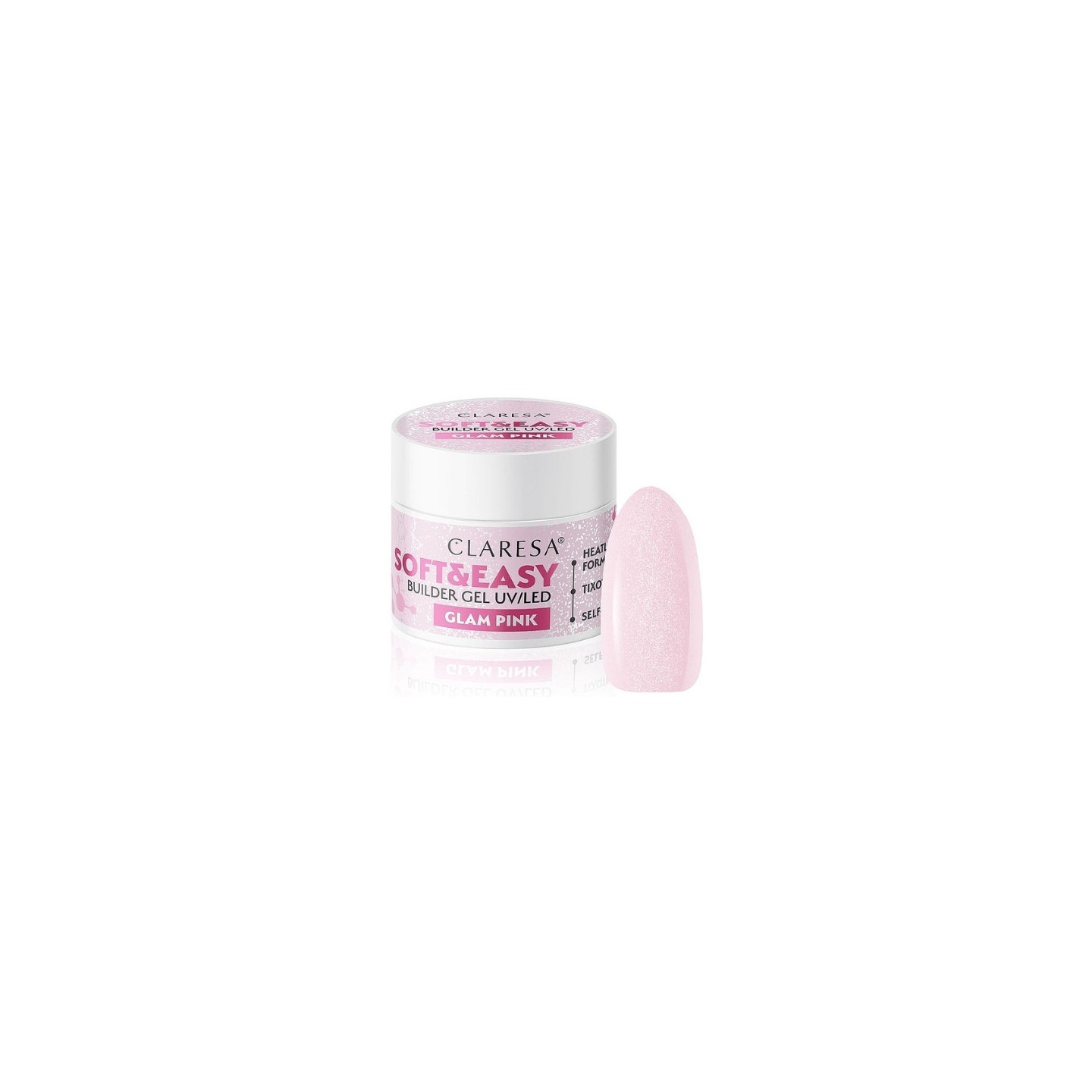 Інноваційний будівельний гель – ідеальне рішення для вас! Ця унікальна формула гелю характеризується надзвичайною структурою та щільністю, що робить його ідеально рівним. Навіть менш досвідчений користувач може працювати з ним швидко та ефективно, а тиксотропність гелю (його здатність повертатися до ego стану) не дає йому стікати на кутикули, полегшуючи укладання. Укладання з використанням SOFT&EASY не потребує підпилювання та нанесення Top coat - просто протріть дисперсійний шар Cleaner і інтенсивно блискучі нігті готові! Сучасна рецептура цього гелю, що характеризується відмінною адгезією, дозволяє навіть тонким шаром вирівняти, зміцнити і подовжити нігтьову пластину. Укладання тримається мінімум 4 тижні, а спеціальна формула Heatless зменшує відчуття печіння під час полімеризації в лампі. Також гель запобігає ламкості та кришенню нігтів, що дозволяє їм рости довше. GLAM PINK - пастельний, ніжний відтінок рожевого з мерехтливими сріблястими частинками, ідеально підходить як повний манікюр, так і як основа для подальшої укладки, покриває до 90%!