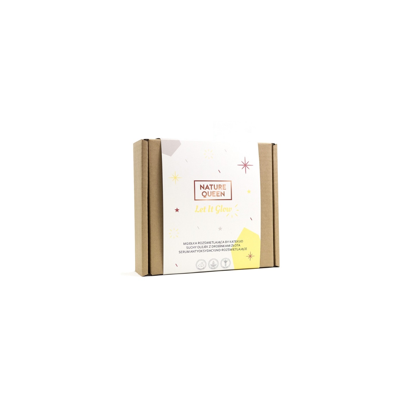 Набір містить три продукти: освітлюючий туман, суху олію з частинками золота та антиоксидантну та освітлюючу serum . Набір для догляду ідеально підходить для догляду за сірою та тьмяною шкірою. Косметика має освітлюючі та живильні властивості шкіри. Набір упакований у гарну коробку з декоративною графікою в різдвяній атмосфері, що робить його ідеальною ідеєю для подарунка.