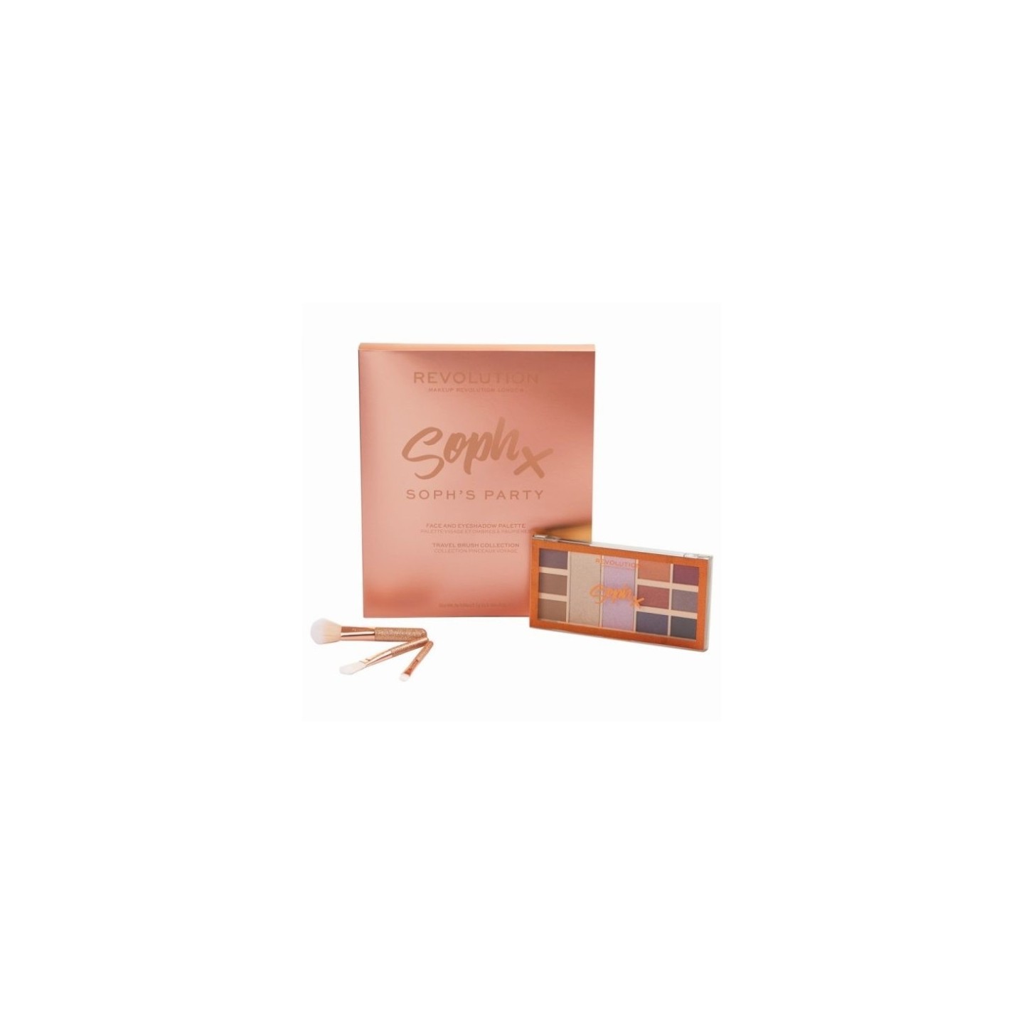 Подарунковий набір Makeup Revolution Party Soph Collection: палітра з 11 тіней і 3 пензликів для макіяжу